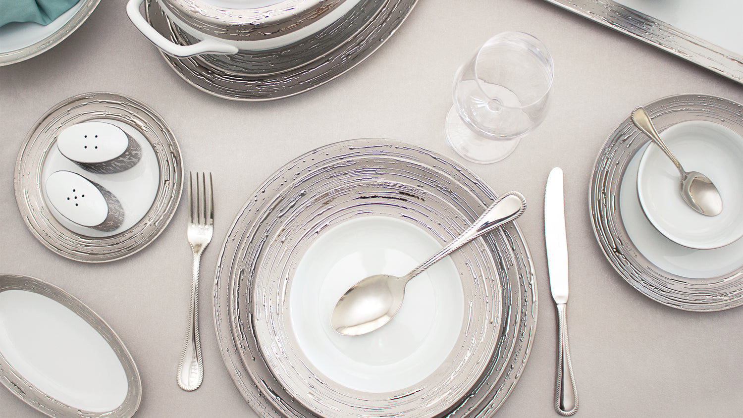 Our most decadent collection. Hand-painted with matte and shiny platinum, this collection is a statement.
