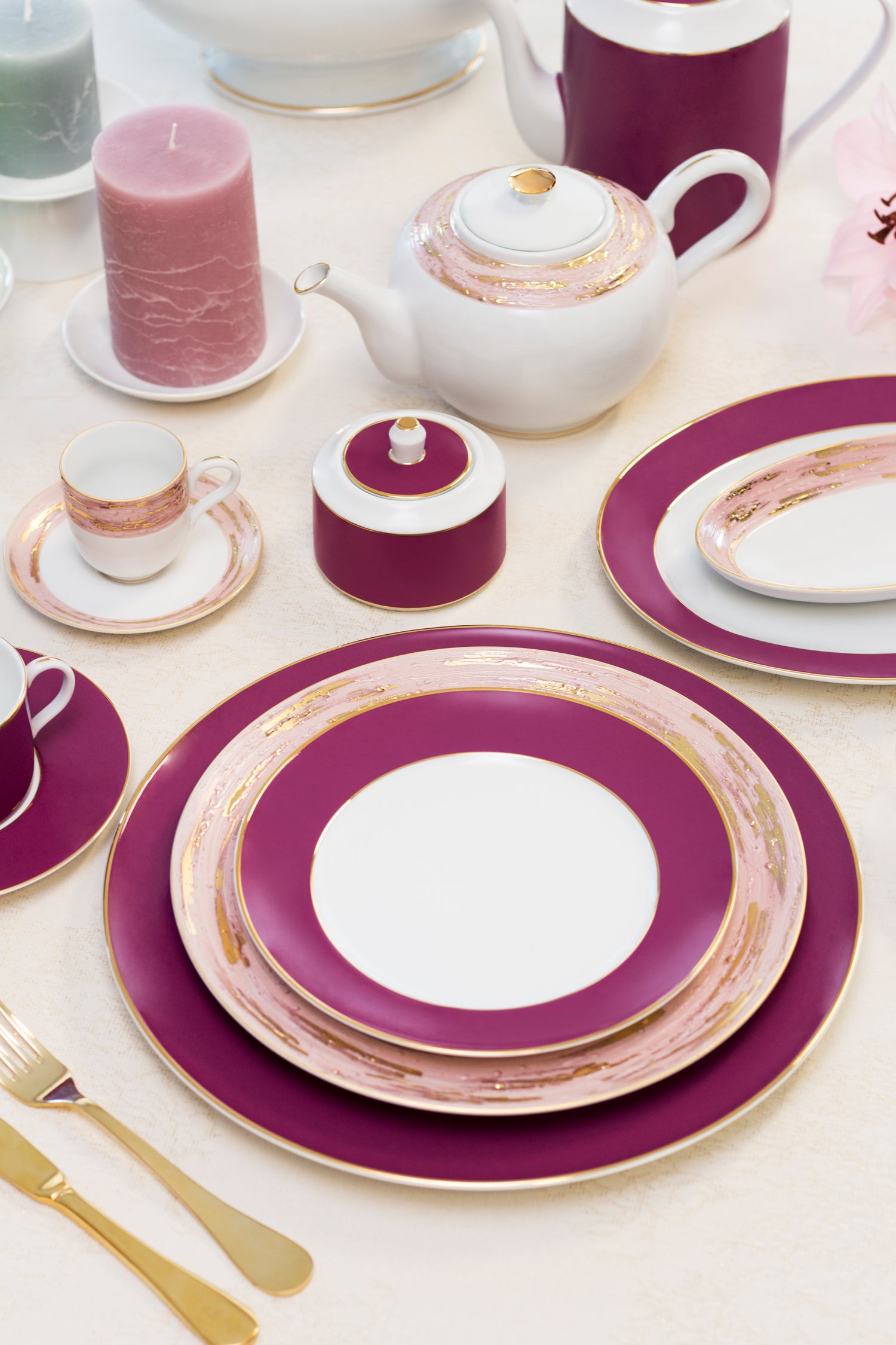 Our precious Violet Collection features hand-painted 24k gold on a baby pink canvas so beautiful you can eat it. Complementary violet tones create a stunning visual harmony.