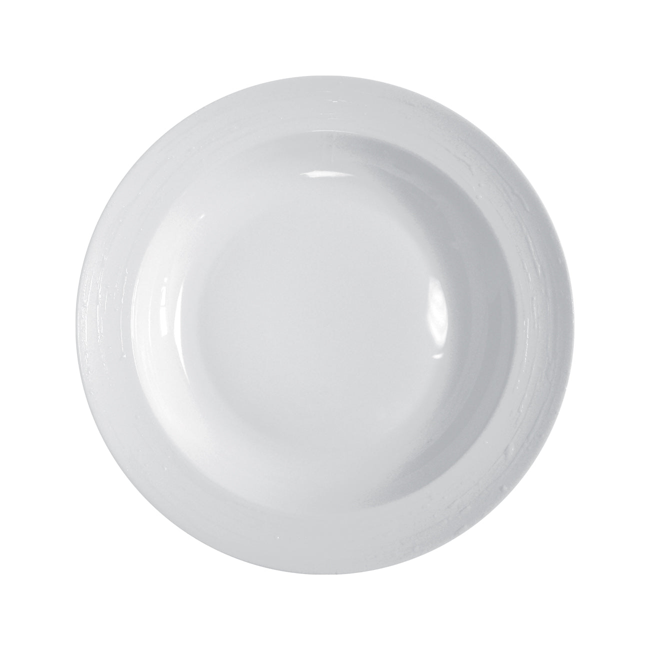 An elevated take on whiteware. Textured white streaks decorate the white rim to create a minimalist yet dynamic white collection.